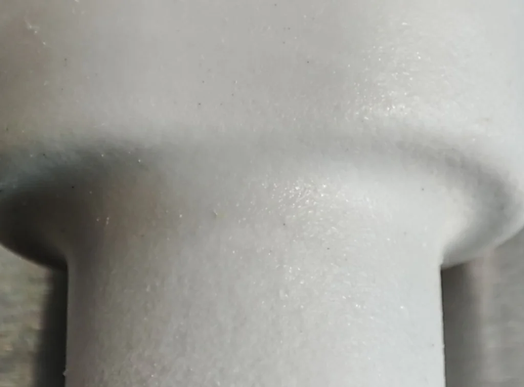SLA-Formen bieten eine deutlich glattere Oberfläche, jedoch sind lokale Spuren von Stützstrukturen und manueller Nachbearbeitung weiterhin erkennbar, wie in Abbildung 1.7 dargestellt.