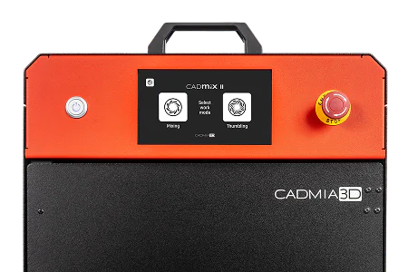 CADmix II ist ein Gerät der zweiten Generation mit Zwei-in-eins-Funktion, das entwickelt wurde, um das Auffrischen und Mischen von SLS-Pulvern zu automatisieren. Es ersetzt mehrere manuelle Arbeitsschritte – wie Sieben, manuelles Mischen und Schütteln – durch einen sauberen, schnellen und vollständig geschlossenen Prozess. Über das intuitive Touchscreen-Interface kannst du den Mischzyklus in wenigen Sekunden starten. Im Inneren sorgen spezielle Behälter mit integrierten Mischpaddeln für eine gleichmäßige Vermischung von frischem und gebrauchtem Pulver, sodass du hochwertige, homogene Mischungen für deinen nächsten Druckauftrag vorbereiten kannst. Die variable Drehrichtung und der leise Betrieb erhöhen zusätzlich die Effizienz und den Nutzungskomfort.