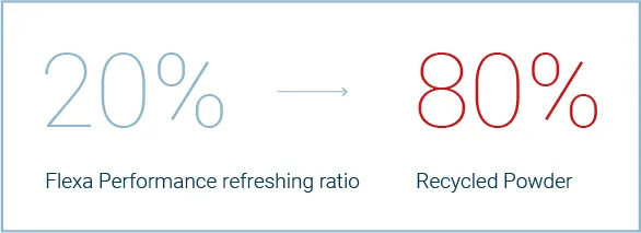 The recommended refresh ratio is 20%, meaning you should add 20% fresh powder to the unsintered material after each print. While the powder is technically 100% reusable, adding fresh powder helps maintain optimal print quality.