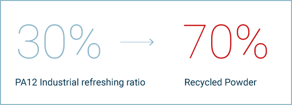 Yes. To maintain print quality, mix approximately 30 % fresh PA12 Industrial powder with 70 % recycled powder each cycle.