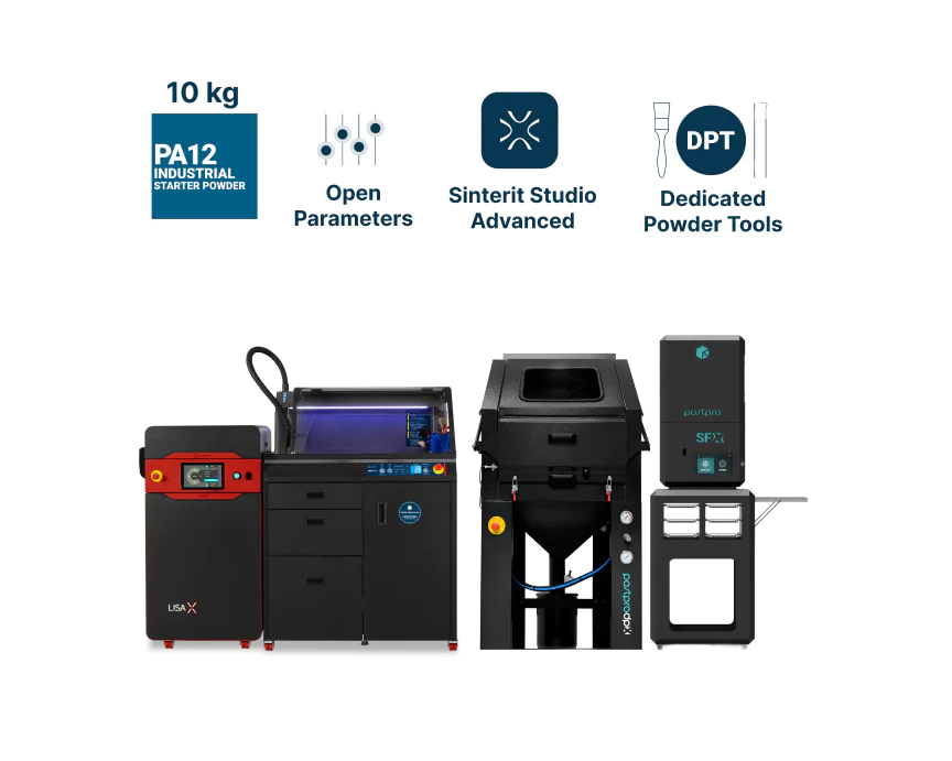 Lisa X Performance+VS marki Sinterit to zaawansowane rozwiązanie do druku 3D w technologii SLS, tworzące kompletne, gotowe do produkcji ekosystemy, które łączą wydajność przemysłowego druku z automatycznym, profesjonalnym postprocessingiem.