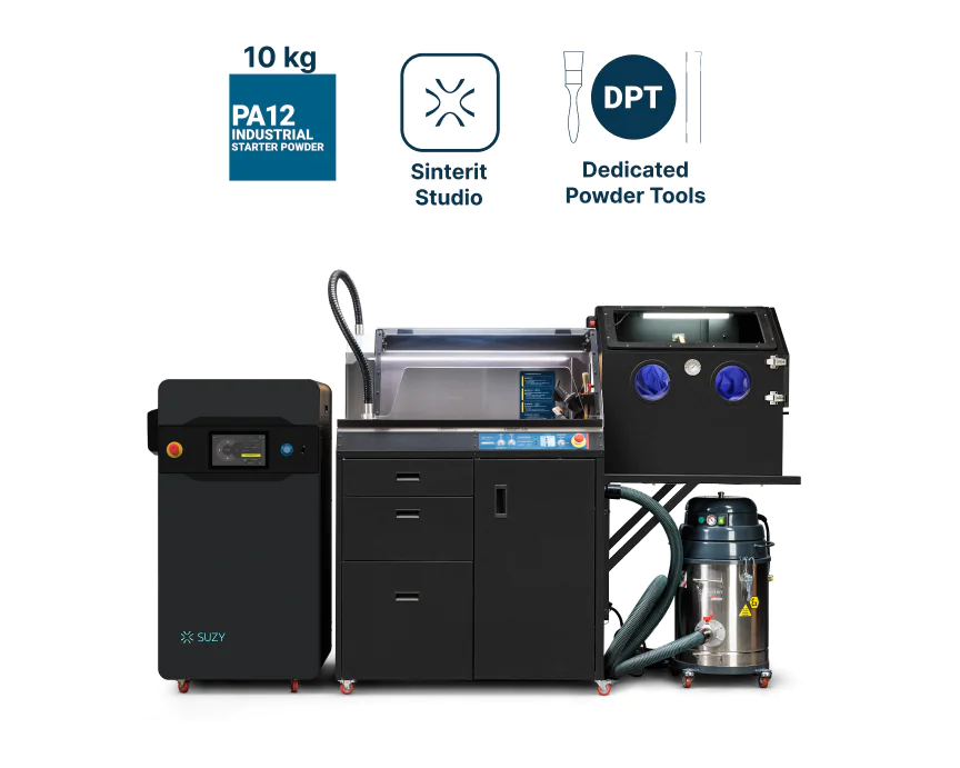 SUZY Complete Set marki Sinterit to kompleksowy zestaw zaprojektowany, by dostarczać przemysłową jakość druku 3D w technologii SLS (Selective Laser Sintering) w kompaktowej i ekonomicznej formie. To rozwiązanie typu all-in-one, stworzone dla profesjonalistów poszukujących szybkiego prototypowania oraz efektywnej produkcji krótkoseryjnej – bez kompromisów w zakresie jakości, precyzji i bezpieczeństwa.